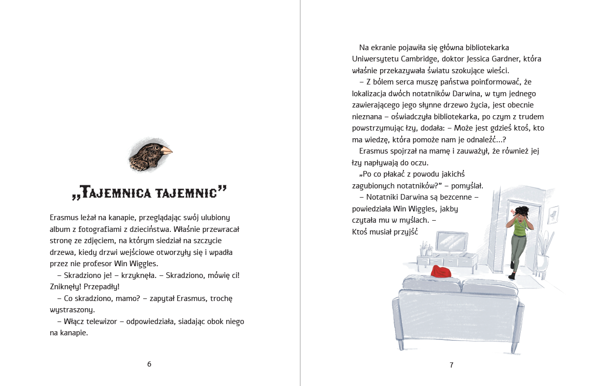 Erasmus nie rozumie, dlaczego jego mama wpada w panikę z powodu zaginięcia… dwóch notatników. Czy ma znaczenie to, że jest ekspertką od Darwina, a te notesy należały właśnie