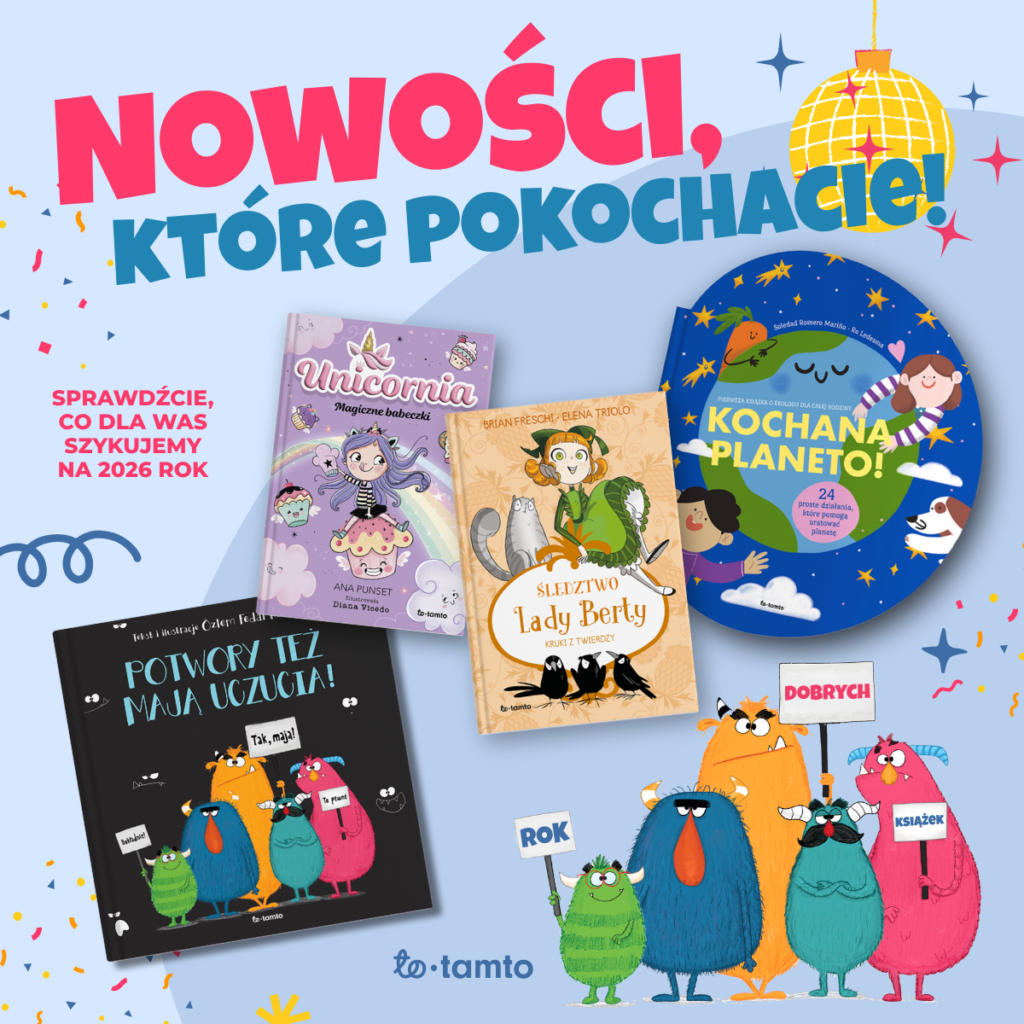 Już teraz uchylamy rąbka tajemnicy i z radością przedstawiamy kilka naprawdę interesujących nowości. Chcemy, aby nasza oferta na nowy rok była bardziej różnorodna niż kiedykolwiek, dlatego znajdziecie tu wiele od książek rozwijających kreatywność i ciekawość świata, po historie, które wciągną dzieci od pierwszej strony.